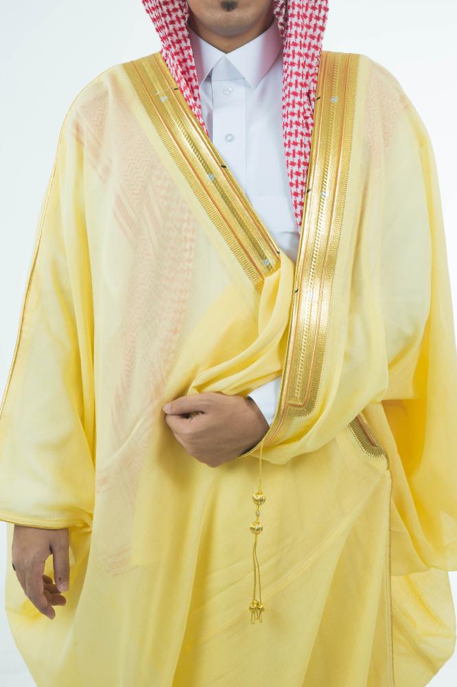 • القماش: صوف وارد بشت الأحساء الذهبي